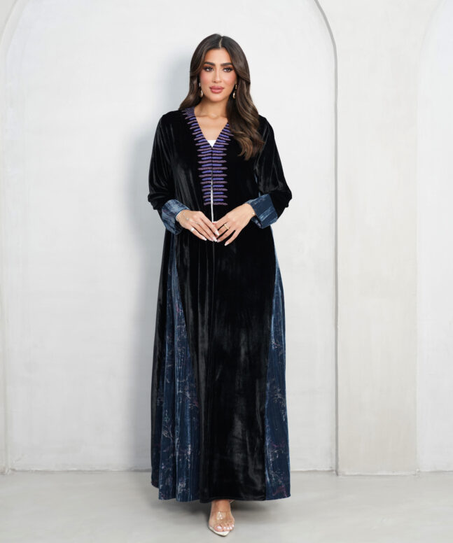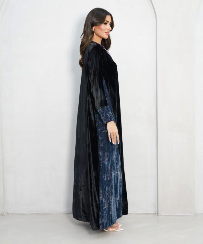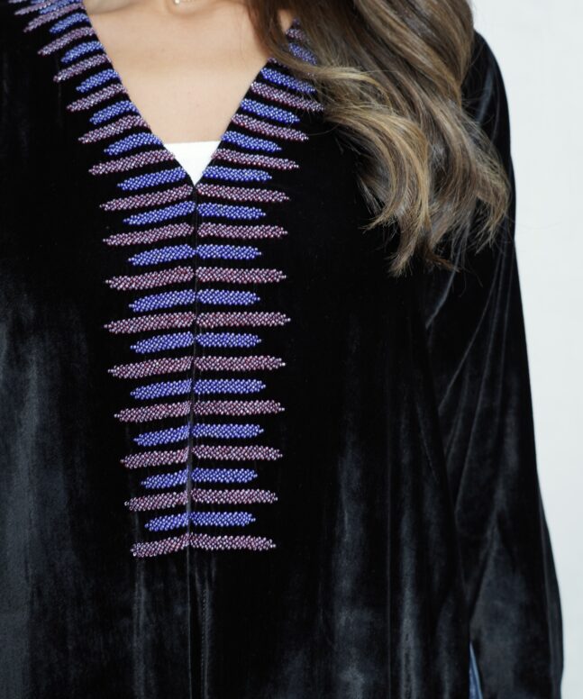 Abaya description : 2 light Velvet Abaya fabric with handwork beads color multi pink , Plain shiela is included.