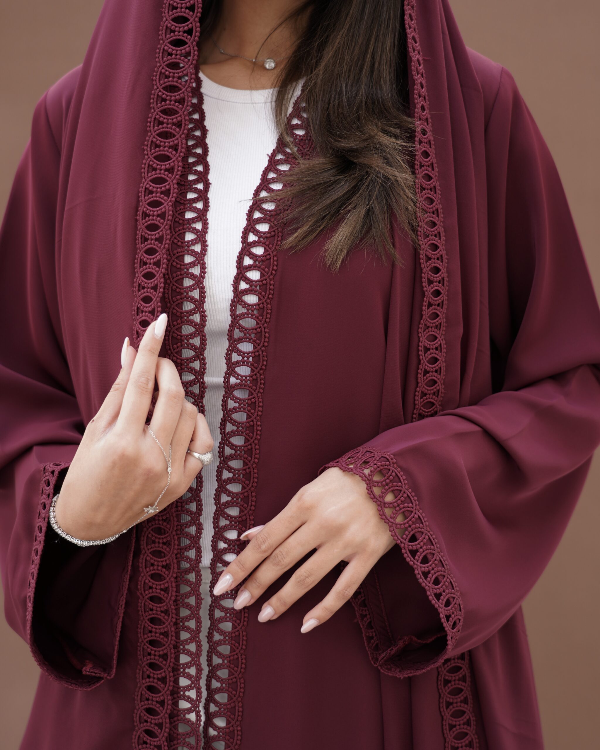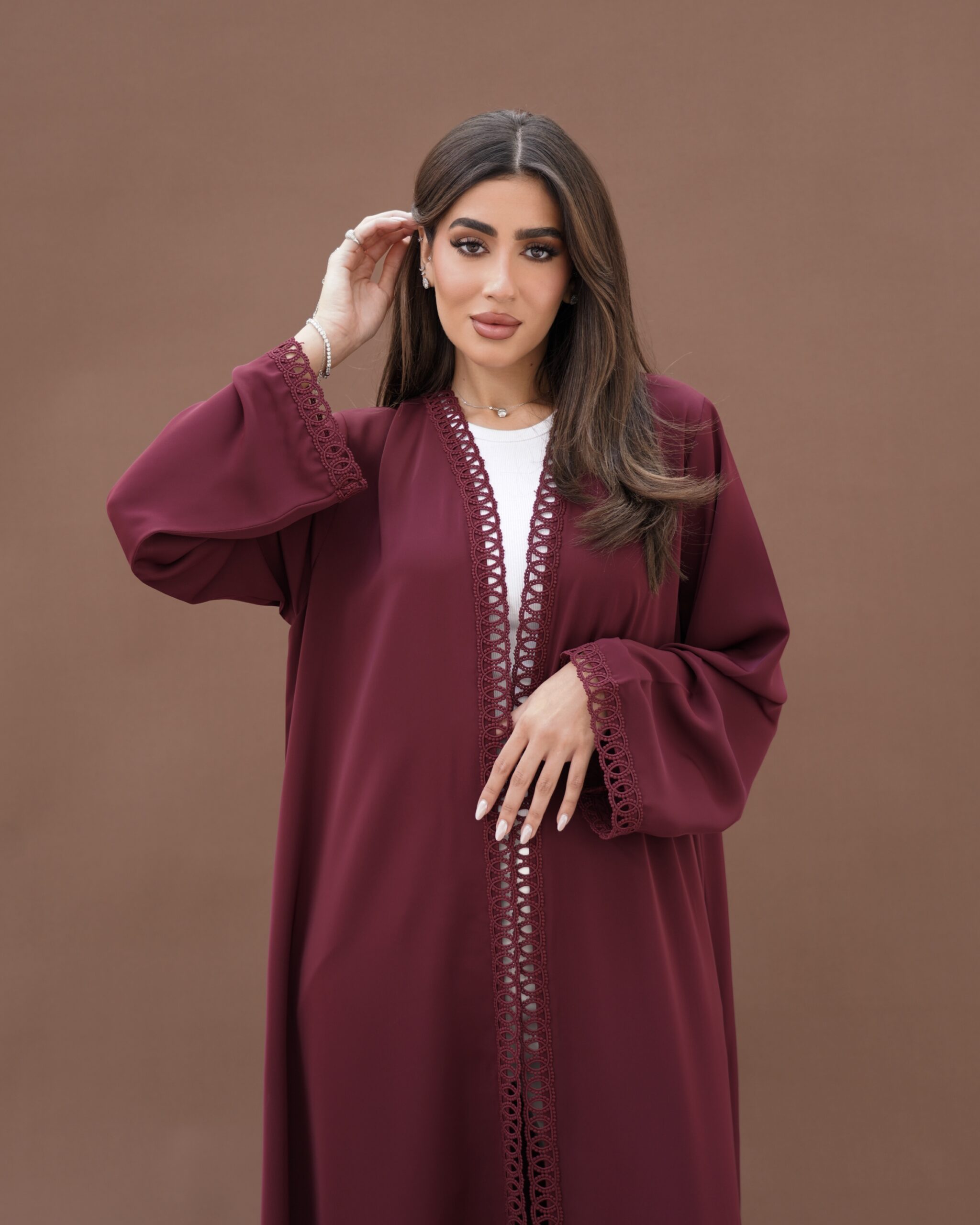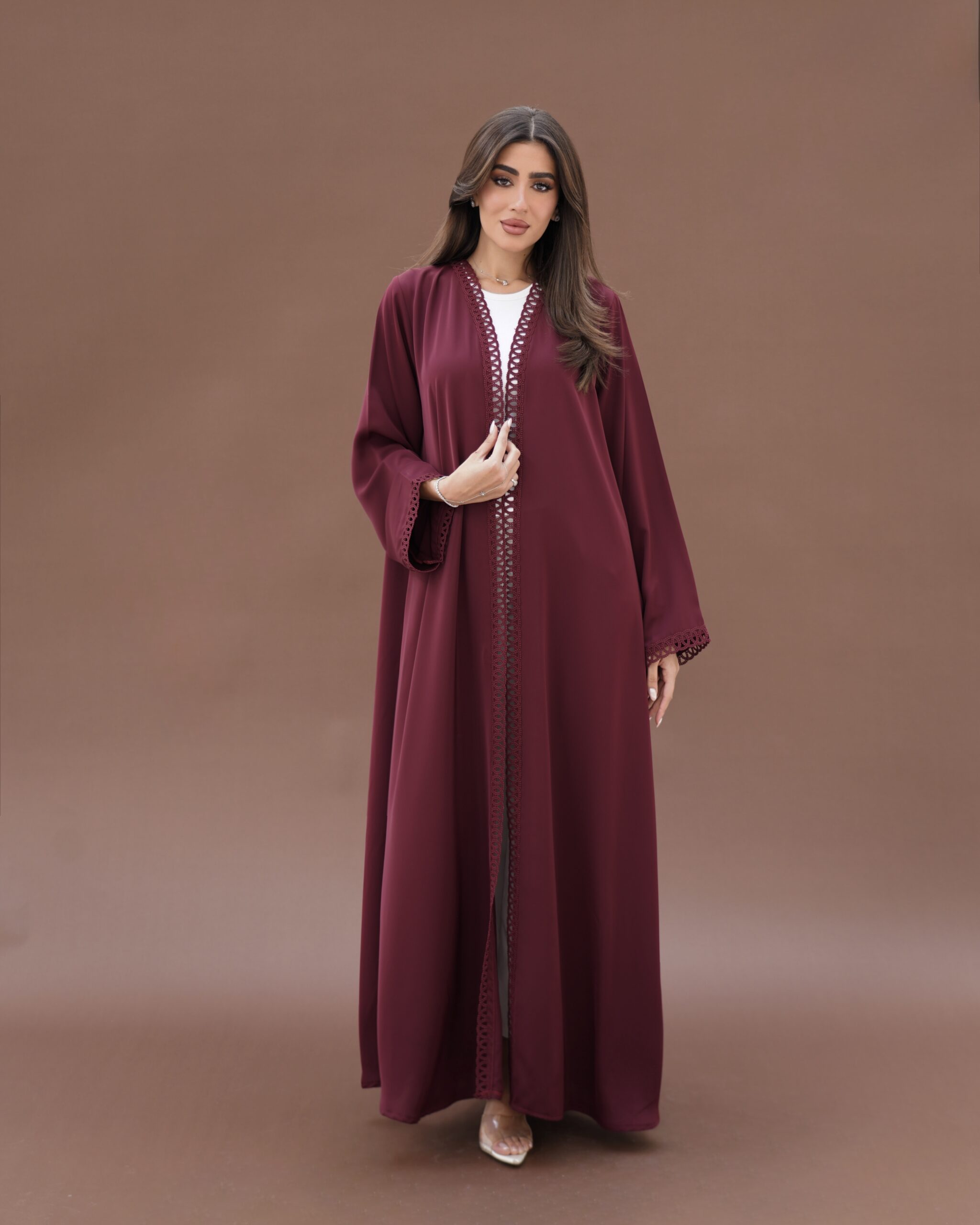 This elegant abaya is crafted from soft Turkish crepe fabric, prized for its smooth texture, lightweight feel, and graceful drape. Designed with a clean straight-cut silhouette and lace , it offers timeless elegance and effortless comfort for everyday luxury.